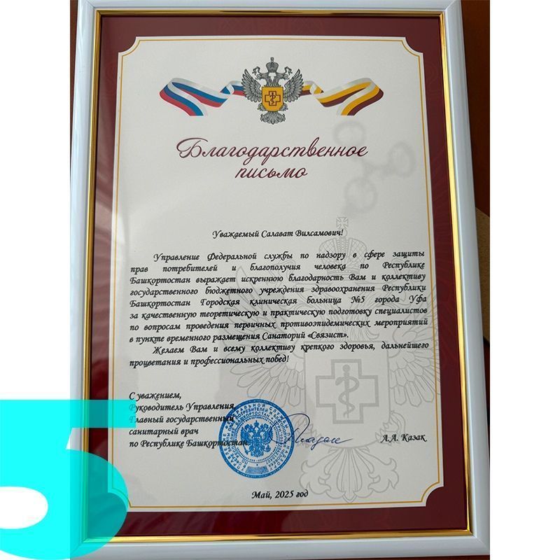 Больница №5 г. Уфы получила Благодарственное письмо по итогам подготовки к чрезвычайным ситуациям