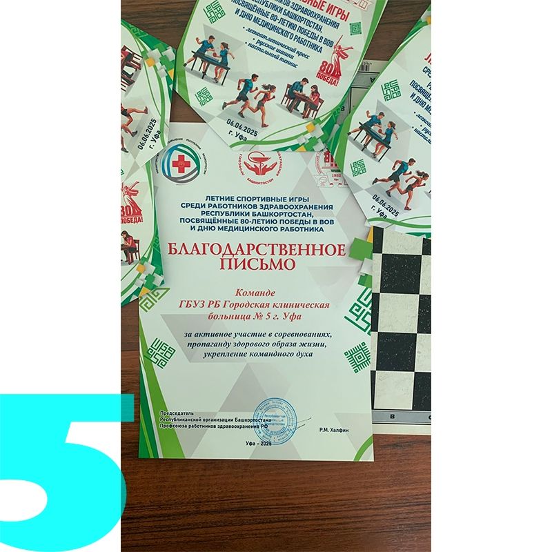 В спартакиаде смело выступила команда Поликлинического отделения № 2 Больницы № 5 г. Уфы: врачи–терапевты Масагутова Индира Закировна, Каримов Рустам Расимович и Кенжаев Шохмурод Нуруллоевич, а также капитан коллектива Галлямова Снежана Эрнистовна. Их энергия и сплочённость стали примером настоящего командного духа.